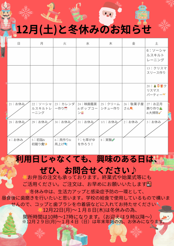 12月の活動予定をまとめましたので、ぜひチェックしてみてください👀✅