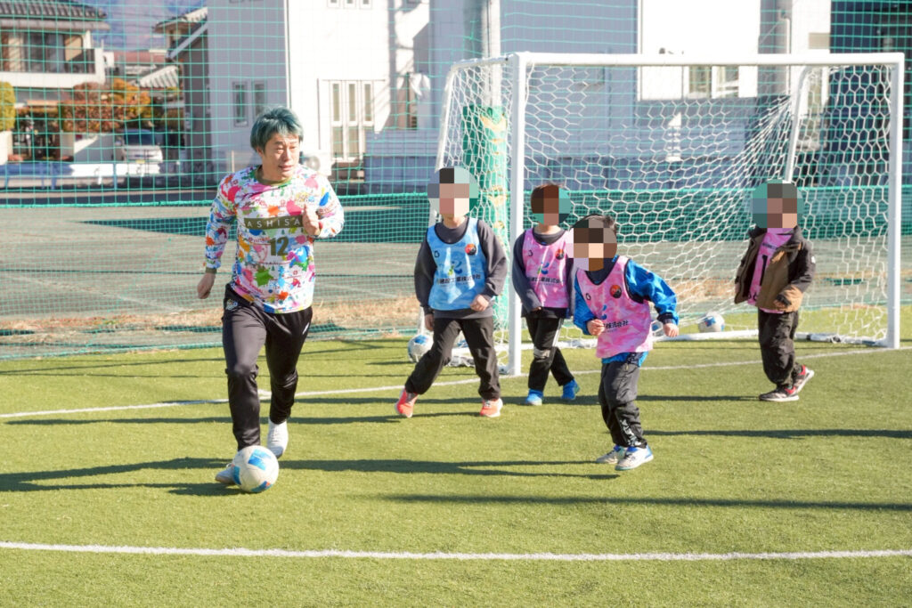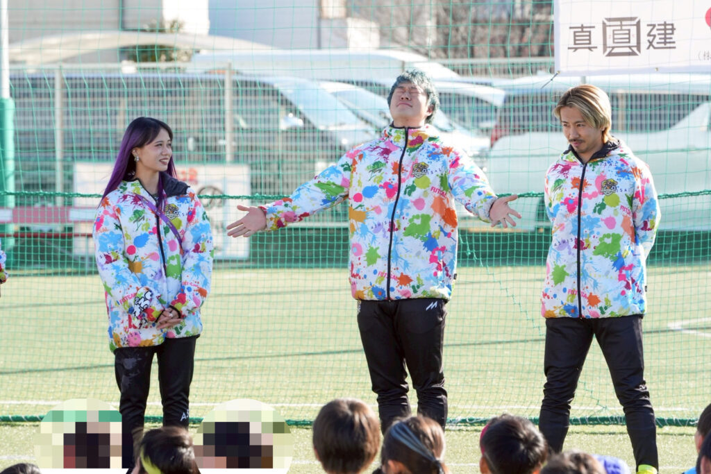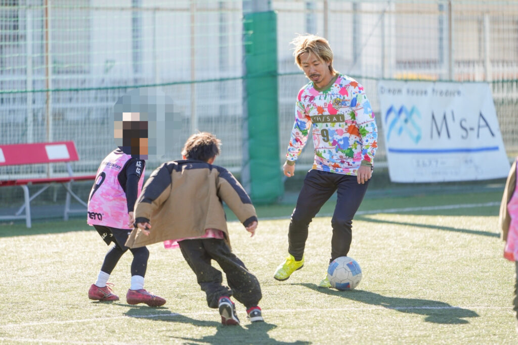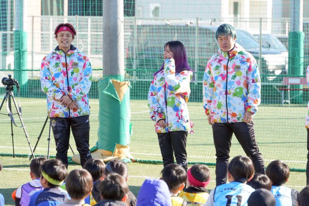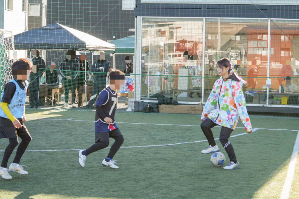 「本当に一緒にプレーできるの」「本物だ、、、」と”憧れの人”を目で追いながらフットサルが始まりました。