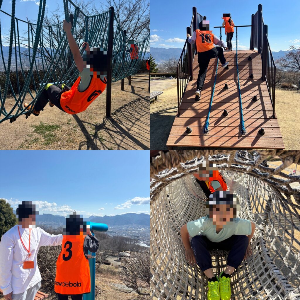その後は、クライミングロープやジップライン、吊り橋遊具などたくさんの遊具に挑戦しながら自由に遊びました。