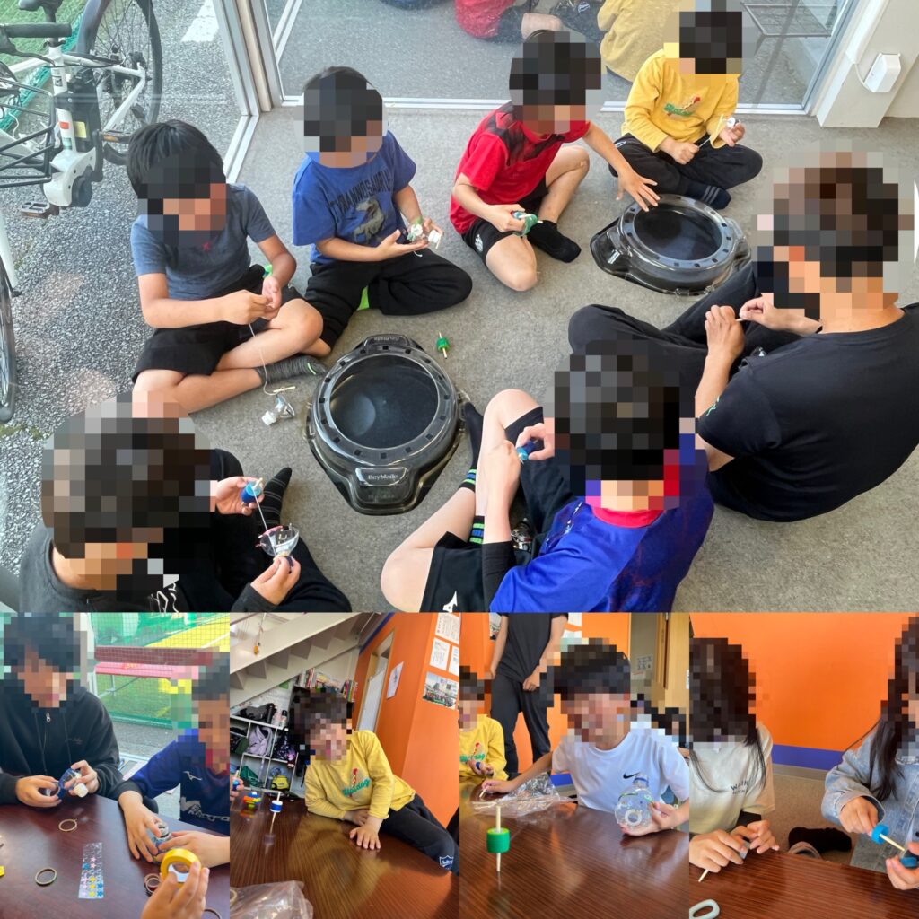 午後は、ペットボトルを使ったベイブレード風のコマ作りに挑戦しました。