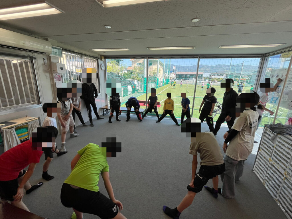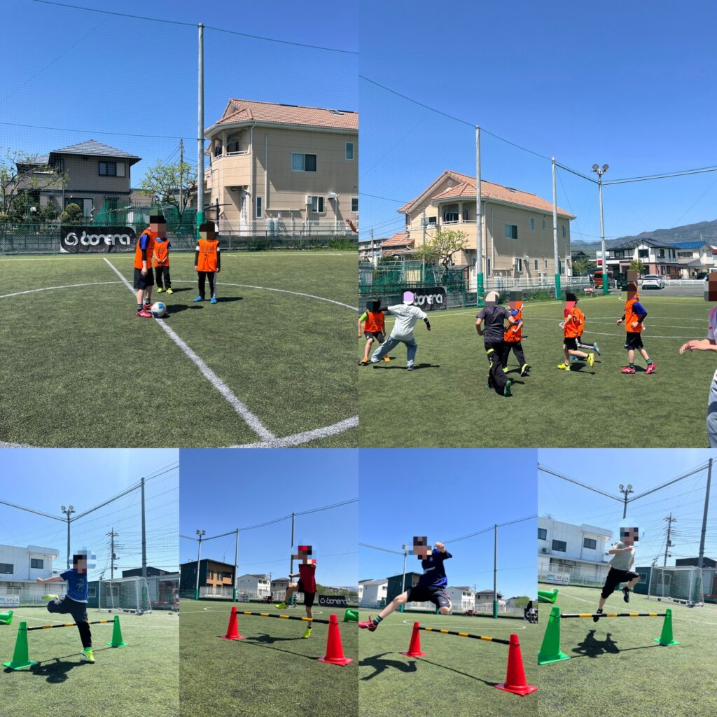基礎的な動きを取り入れながら、走る・止まる・方向を変えるといった動作を繰り返し行い、体の基礎作り向上を狙って取り組みました。